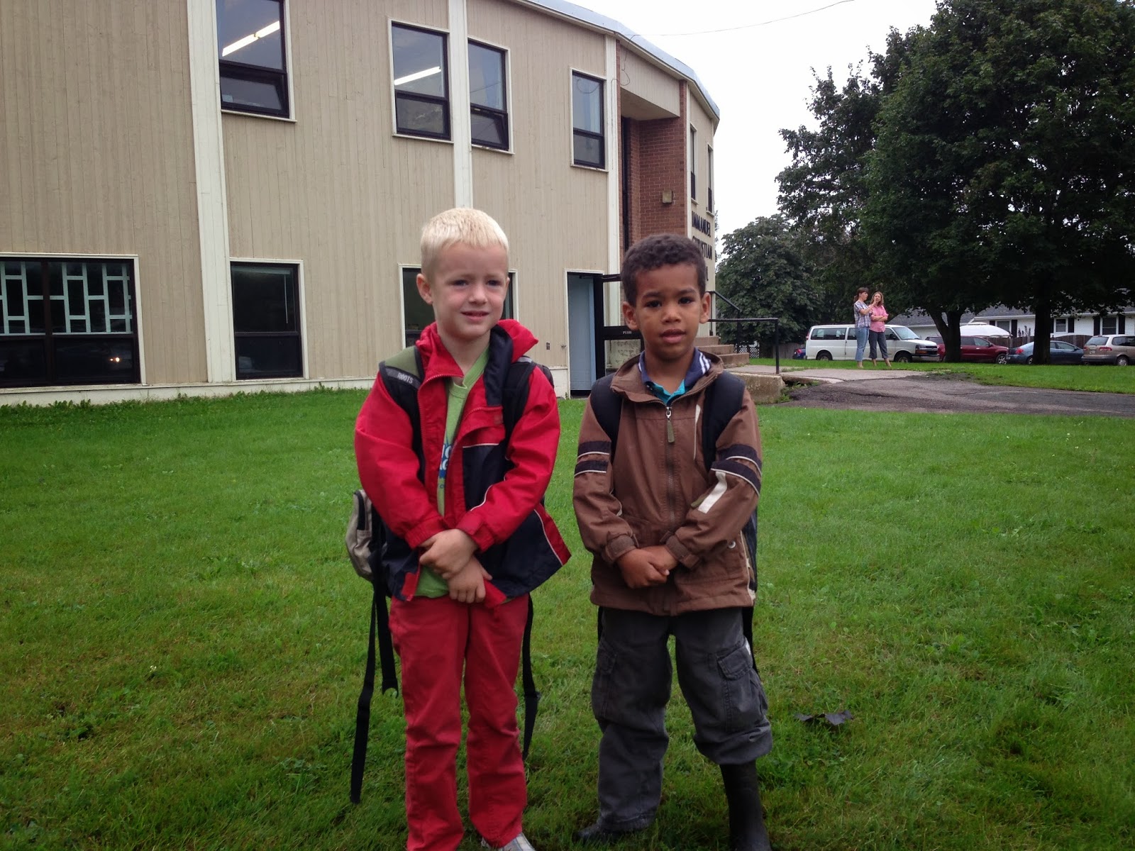 Jack and his cousin Sam on their first day of Kindergarten.  Please don't look to closely at Jack's outfit.  I wasn't home to help pick it out and Willem is colour blind.  Poor kid.